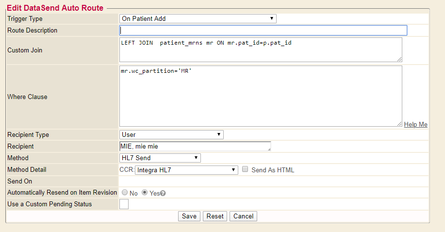 • This allows for more filtering to work with specific sets of patients. Requires some understanding of the Webchart DB schema. Generally requires MIE EDI team to build. However, manually copying Auto Route JOINs and WHERE Clauses into new Auto Routes is also possible.