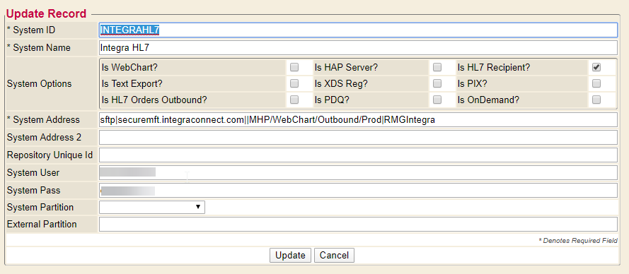 • System Address - This is the end point information. This can be a URL, Filename, SFTP, among others.